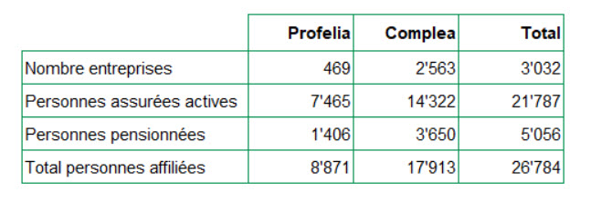 Complea réalise un exercice 2025 stable avec un nombre de personnes assurées actives en légère progression, pour atteindre 14’322 personnes actives et 3’650 personnes pensionnées. Le nombre de contrats reste également au niveau de l’année précédente, les sorties étant compensées par les entrées.